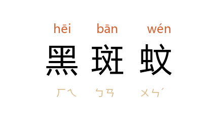 ⒈ 动物名。成虫者身体黑色或棕色,脚上有白色环纹,翅膀上没有斑点。幼虫和蛹常生长在树穴或缸盆等积水中,卵分散沉在水底。是传播流行性乙型脑炎等疾病的媒介。