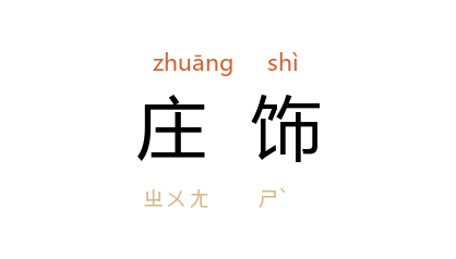 引《南史·后妃传上·宋文潘淑妃》:“帝好乘羊车经诸房, 淑妃 每庄饰袭帷以候。”《南史·张彪传》:“妇人本在容貌。辛苦日久,请暂过宅庄饰。”北魏 杨衒之 《洛阳伽蓝记·景明寺》:“庄饰华丽,侔於 永寧。”