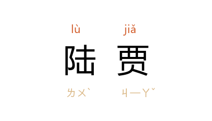 ⒈ 汉初大臣。楚国人。有辩才。曾出使南越,封赵佗为南越王,令称臣奉汉约。拜为太中大夫。常向高祖推荐诗书,谏劝高祖唯有文武并用才是长治久安之术。并先后为高祖著文十二篇,总结秦亡汉兴教训,名为《新语》。吕后专权后,遂称病家居。后助陈平诛吕氏,拥立文帝。文帝时再使南越,说服赵佗去除僭越之仪,尊奉汉帝。