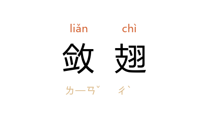 引晋 陶潜 《闲情赋》:“鸡敛翅而未鸣,笛流远以清哀。”南朝 梁简文帝 《祠伍员庙》诗:“惟有三青鸟,敛翅时逢迎。”宋 梅尧臣 《春寒》诗:“蝶寒方敛翅,花冷不开心。”