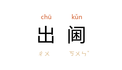 ⒉ 犹出门。不出阃,谓不出宫门之外。