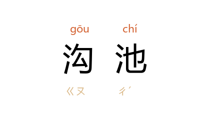 引《礼记·礼运》:“大人世及以为礼,城郭沟池以为固。”孔颖达 疏:“沟池,城之壍。”南朝 齐 王屮 《头陀寺碑文》:“沟池 湘 汉,堆阜 衡 霍。”唐 元稹 《李光颜加阶制》:“朕闻有天下者,道德仁义以为理,城郭沟池以为固。”
