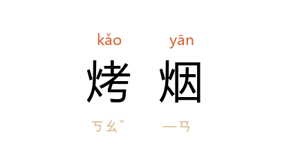⒈ 在特设的烤房中烤干的烟叶。颜色黄,弹性较大,是香烟的主要原料。亦指制造烤烟的烟草。