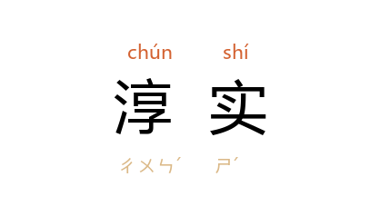 引清 方苞 《原人下》:“秦 汉 以还,中更衰乱,或有数十百年之安,则其时政事必少修明焉,人风必少淳实焉。”清 陆以湉 《冷庐杂识·有美堂后记》:“是宜崇经术,使士皆研精传注,不苟为炳烺之观,然后风会益趋於淳实。”