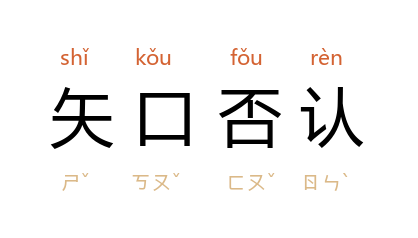 例如:「弟弟矢口否认花瓶是他打破的。」