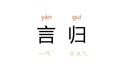 ⒈ 回归。言,助词。《诗·周南·葛覃》:“言告师氏,言告言归。”一说为我归。毛传:“言,我也。”