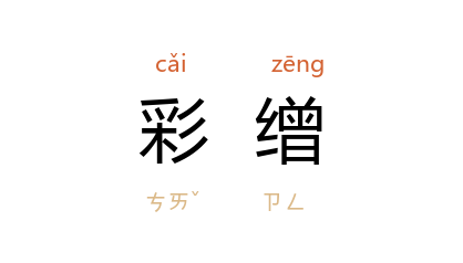 引汉 李陵 《录别诗》之一:“欲寄一言去,託之牋綵繒。”《后汉书·鲜卑传》:“詔封 乌伦 为率众王, 其至鞬 为率众侯,赐綵繒各有差。”唐 段成式 《酉阳杂俎·境异》:“﹝ 昆吾国 ﹞以近葬为至孝。集大氊,居中悬衣服綵繒,哭祀之。”