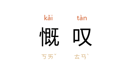 ⒈ 见“慨叹”。亦作“慨嘆”。感慨叹息。