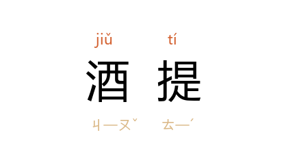 引《警世通言·俞仲举题诗遇上皇》:“酒保见説,便将酒缸、酒提、匙、筯、盏、楪,放在面前。”陈永春 《杂记北平》:“再就是那套紫铜‘漏斗’,其馀是几两装的几个竹制‘酒提’。”