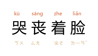 引《红楼梦》第三五回:“宝玉 见他还是哭丧着脸,便知他是为 金釧儿 的原故。”茅盾 《林家铺子》二:“林先生 哭丧着脸,走回‘内宅’去。”