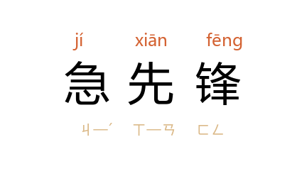 引宋 周密 《癸辛杂识续集·宋江三十六赞》:“急先锋 索超,行军出师,其锋必先,汝勿鋭进,天兵在前。”