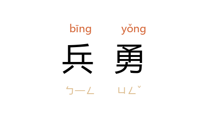 ⒈ 兵卒。清代称兵为「额兵」,额兵之外征募来御寇的称「勇」,合称为「兵勇」。