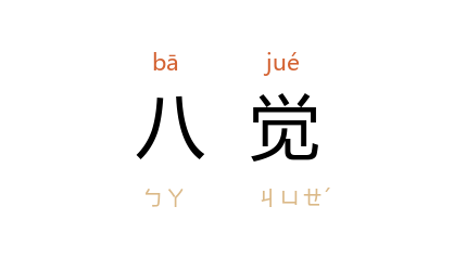 引北周 王褒 《灵坛铭》:“八觉修行,七教弘通。”唐 杨炯 《彭城公夫人尔朱氏墓志铭》:“心依八觉,理会三空。”