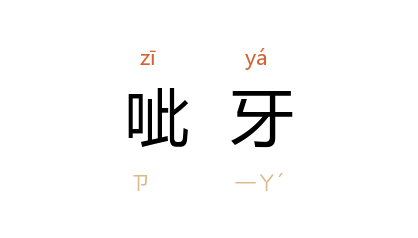 引杨沫 《青春之歌》第二部第一章:“他扭过大脑袋,瞧着 江华 呲牙一笑。”魏巍 《东方》第五部第八章:“小杨春 呲牙一笑说:‘我要防空,还到哪儿去找这个好机会呀!’”《人民文学》1981年第4期:“大公鹿狰狞地呲牙。”