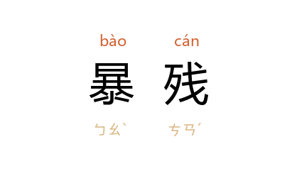 引唐 柳宗元 《憎王孙文》:“恶者王孙兮善者猨,环行遂植兮止暴残。”宋 欧阳修 《尚书屯田员外郎赠兵部员外郎钱君墓表》:“潮州 自 五代 时, 刘氏 暴残其民。”