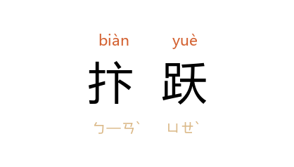 引南朝 梁 江淹 《为萧骠骑让太尉表》:“虽蹈疵戾,犹深抃跃。”唐 崔沔 《奉和圣制同二相已下群官乐游园宴》:“酒酣同抃跃,歌舞咏时康。”宋 王禹偁 《贺皇帝嗣位表》:“荐逢圣日,权守外藩,不获蹈舞玉堦,无任抃跃屏营之至。”明 杨慎 《李前渠诗引》:“婴儿赤子,则怀嬉戏抃跃之心。”闻一多 《给游泽承先生》之五:“湘 鄂 咫尺之遥,良晤弥易,思之不禁抃跃。”