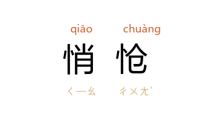 引南朝梁·江淹〈哀千里赋〉:「悄怆成忧,悯然自怜。」唐·柳宗元〈至小邱西小石潭记〉:「四面竹树环合,寂寥无人,凄神寒骨,悄怆幽邃。」
