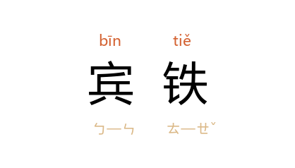 ⒈ 镔铁。精炼之铁。宾,用同“镔”。