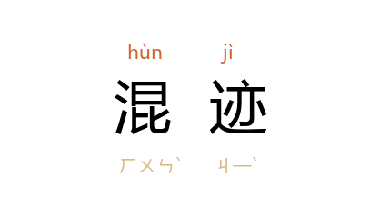 ⒈ 见“混迹”。亦作“混跡”。谓使行踪混杂在大众间。常有隐身不露的意思。