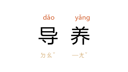引《文选·嵇康<养生论>》:“至於导养得理,以尽性命,上获千餘岁,下可数百年,可有之耳。”李周翰 注:“导,摄也。”鲁迅 《中国小说史略》第四篇:“﹝ 葛洪 ﹞少以儒学知名,究览典籍,尤好神仙导养之法。”