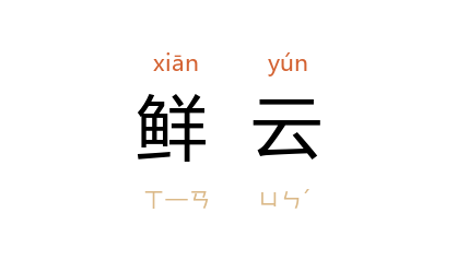引晋 陆机 《悲哉行》:“和风飞清响,鲜云垂薄阴。”唐 虞世南 《奉和月夜观星应令》:“薄雾销轻縠,鲜云卷夕鳞。”明 吴承恩 《寿陈拙翁》:“桂室兮兰户,鱻云流兮白鹤举。”清 黄景仁 《晓发牛渚矶》诗:“短帆拂晓春江上,鲜云生纈波如掌。”