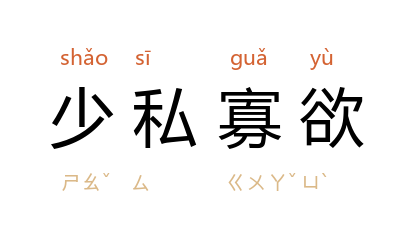 引《庄子·山木》:「南越有邑焉,名为建德之国,其民愚而朴,少私而寡欲。」北齐·颜之推《颜氏家训·勉学》:「欲其观古人之贵义轻财,少私寡欲,忌盈恶满,赒穷恤匮。」