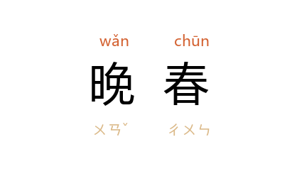 ⒈ 春季的最后一个月。现指农历三月。 金 吴缴 有《晚春言怀寄燕中知旧》诗。