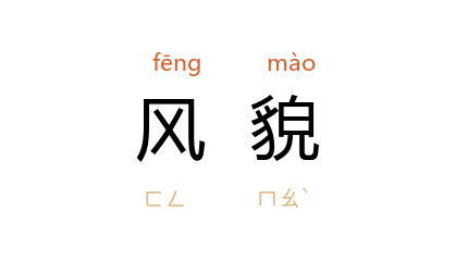 ⒈ 风采容貌。 晋 张华 《博物志》卷六:“初, 粲 与族兄 凯 避地 荆州 依 刘表。