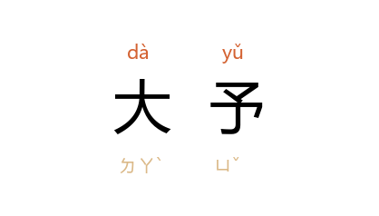 引《后汉书·明帝纪》:“﹝ 永平 三年﹞秋八月戊辰,改大乐为大予乐。”《文选·颜延之<三月三日曲水诗序>》:“《大予》协乐,上庠肆教。”刘良 注:“《大予》,乐名。”《宋书·臧质传》:“自恣丑薄,罔知涯涘,干謁陈闻,曾无纪极,请乐穷《大予》之英,求器尽官府之选。”