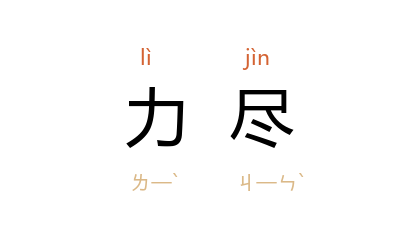 引《左传·昭公十一年》:“力尽而敝之,是以无拯,不可没振。”唐 元稹 《有鸟》诗之五:“主人频问遣妖术,力尽计穷音响悽。”鲁迅 《华盖集续编·厦门通信(三)》:“语堂 是除办事教书之外,还要防暗算,我看他在不相干的事情上,弄得力尽神疲,真是冤枉之至。”