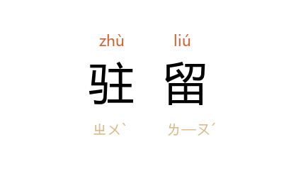 引晋 袁宏 《后汉纪·明帝纪上》:“陛下因行田野,见稼穡,经览河山,逍遥驻留,弭节周旋。”唐 方干 《东溪言事寄于丹》诗:“日月昼夜转,年光难驻留。”宋 范仲淹 《与仲仪待制书》:“贤姪自 陕 来,速於拜覲,不敢驻留。”