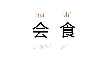 引《史记·淮阴侯列传》:“令其裨将传飧,曰:今日破 赵 会食!”唐 李肇 《唐国史补》卷下:“宰相百僚会食都堂。”沙汀 《困兽记》十九:“她也照常去和丈夫会食,照常接待家里的来客。”