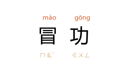 引明 沉德符 《野获编·礼部一·褐盖》:“文兴 因冒功官百户,差至 浙江 拏人。”《明史·程启充传》:“衝锋斩馘者,甲也,而乙取之,甚者杀平民以为贼,是谓冒功。”《清史稿·辅国武襄公巴尔堪传》:“吾不能临阵而死,今创发,勿令家人以阵亡冒功也。”郭沫若 《孔雀胆》附录《<孔雀胆>的故事》:“车力特穆尔 分明有诳报军情及冒功求赏的嫌疑,因此我便定他为谗害 段功 的主角。”