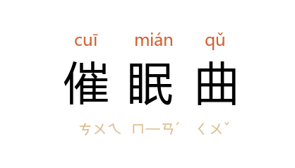 ⒈  使婴儿入睡所唱的歌曲。曲调柔和、舒缓,具有催眠的作用。