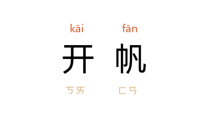 引唐 李白 《下寻阳城泛彭蠡寄黄判官》诗:“开帆入天镜,直向 彭湖 东。”宋 徐铉 《送龚明府九江归宁》诗:“解缆垂杨緑,开帆宿鷺飞。”清 曹寅 《自润州至吴门行将北归杜些山程令彰作诗见寄奉和》之二:“莽莽开帆雨,初残见月生。”