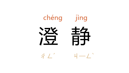引《韩诗外传》卷七:“血脉澄静,娉内以定之。”宋 罗大经 《鹤林玉露》卷十六:“此虽眼前语,然非心源澄静者不能道。”曹禺 《北京人》第一幕:“苍白而瘦削的脸上,深湛的黑眼睛有若一泓澄静的古潭。”