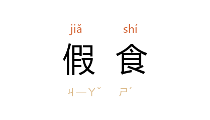 引《列子·说符》:“有贫者,常乞於城市。城市患其亟也,众莫之与。遂适 田氏 之厩,从马医作役而假食。”晋 王嘉 《拾遗记·秦始皇》:“二人每假食於路,剥树皮编以为书帙,以盛天下良书。”苏曼殊 《断红零雁记》第二七章:“余等暂与 潮儿 为别,遂向 雪梅 故乡而去,陆行假食,凡七昼夜,始抵 黄叶村。”