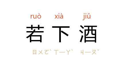 引宋 苏轼 《西太一见王荆公旧诗偶次其韵》之二:“但有樽中若下,何须墓上征西。”唐 李肇 《唐国史补》卷下:“酒则有 郢州 之富水, 乌程 之若下, 滎阳 之土窟春, 富平 之石冻春。”《初学记》卷八引 晋 张勃 《吴录》:“长城 若下酒有名。溪南曰 上若,北曰 下若,并有村。村人取 若下 水以酿酒,醇美胜云阳。”
