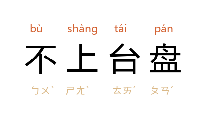 ⒈ 比喻品德不佳,难登大雅。元·高文秀也作「不得台盘」。