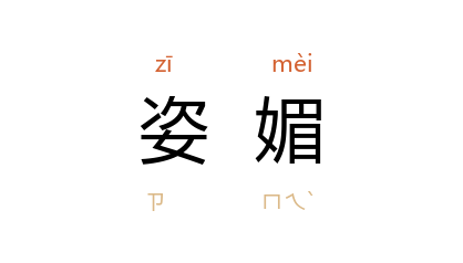 引三国 魏 阮籍 《咏怀》之十二:“流盼发姿媚,言笑吐芬芳。”南朝 梁 徐防 《长安有狭斜行》:“小妇多姿媚,红纱映削成。”唐 韩愈 《石鼓歌》:“羲之 俗书趁姿媚,数纸尚可博白鹅。”宋 苏舜钦 《和韩三谒欧阳九之作》:“自顾屯钝极,出语少姿媚。”