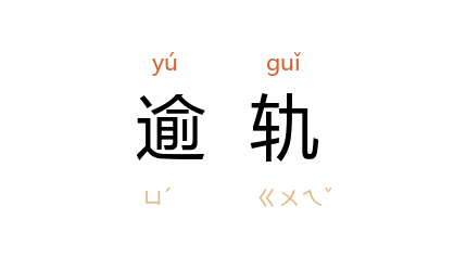 引《管子·君臣上》:“上有五官以牧其民,则众不敢踰轨而行矣。”龚振黄 《青岛潮》第十四章:“北京 学界,因 青岛 问题,开会演说,举动逾轨。”