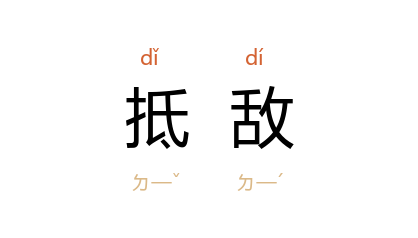 引宋 苏舜钦 《和菱磎石歌》:“自嗟才力本衰弱,安敢抵敌为之文。”《水浒传》第九四回:“説 宋江 等兵强将猛,难以抵敌。”清 洪昇 《长生殿·惊变》:“事起仓卒,怎生抵敌。”