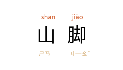 ⒈ 亦称“山麓”。山的靠近平地的地方。