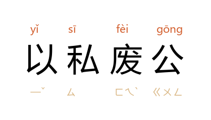 引《三国演义·第七六回》:「今日乃国家之事,某不敢以私废公。」