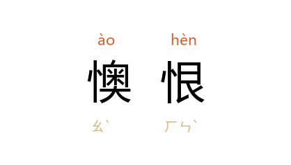 引南唐 冯延巳 《鹊踏枝》词:“懊恨年年秋不管,朦朧如梦空肠断。”宋 罗烨 《醉翁谈录·林叔茂私挈楚娘》:“至其家,言 楚娘 已失,相与懊恨者弥日。”明 沉鲸 《双珠记·狱中冤恨》:“懊恨狂夫太不才,搆媒良善受非灾。”倪贻德 《初恋》:“她一方面既懊恨刚才的性子过激,太对不起 麟儿 了;一方面又焦急地等着 麟儿 来上学。”