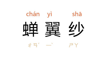 ⒈ 薄如蝉翼的纱;轻纱。