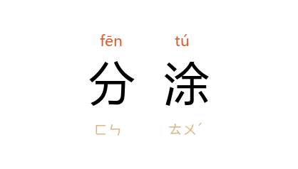⒊ 喻事物性质或人的思想观点出现差别,产生分歧。见“分涂”。