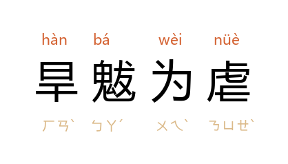引《诗经·大雅·云汉》:「旱魃为虐,如惔如焚。」《后汉书·卷六五·皇甫规传》:「而地震之后,雾气白浊,日月不光,旱魃为虐。」