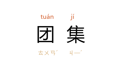 引《宋史·兵志五》:“今欲遣官修义勇强壮法,又别令人团集保甲如何?”明 田艺蘅 《留青日札·非武备》:“团集各里保甲乡兵一千名,听军门原委生员 田艺蘅 调度。”郭沫若 《盲肠炎·不读书好求甚解》:“大家团集起来,大家来从事于新国家的创造吧!”