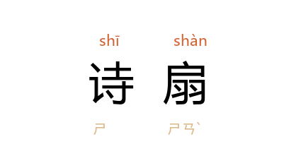 引明 冯梦龙 《古今谭概·专愚·迂仙别记》:“公性酷忌僧……有餽以诗扇者,中有‘竹院逢僧’之句,輒掷还曰:‘咄,此悔君当自受之!’”清 孔尚任 《桃花扇·寄扇》:“独坐无聊,不免取出 侯郎 诗扇,展看一回。”《儒林外史》第十七回:“轿里走出一个人来,头戴方巾,身穿宝蓝直裰,手里摇着一把白纸诗扇。”